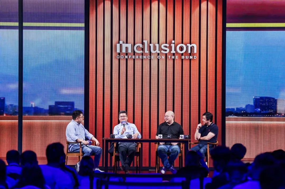 张鹏、韩歆毅、闫俊杰、王小川在外滩大会“产业创新圆桌”分享大模型产业观点,图片来自外滩大会