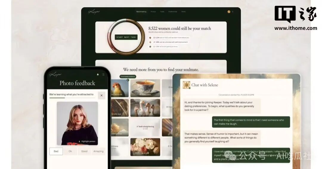 Keeper 是 2022 年成立的一家人工智能婚恋初创公司,它凭借独特的 AI 匹配机制和针对性收费模式近期引发广泛关注。